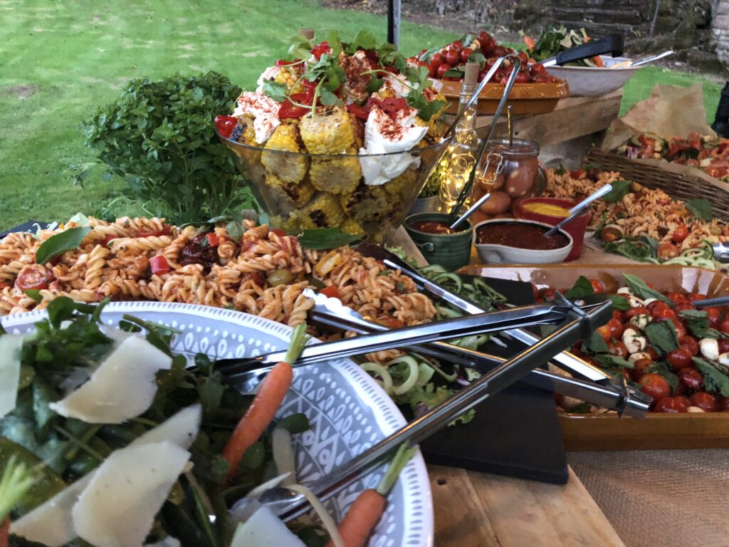 Cooked on site in front of your guests, where they can pick and choose their selection of foods from, Farmhouse sausages, Beef burgers, Chicken wings and Vegetable Options available, other meats are also available on request.