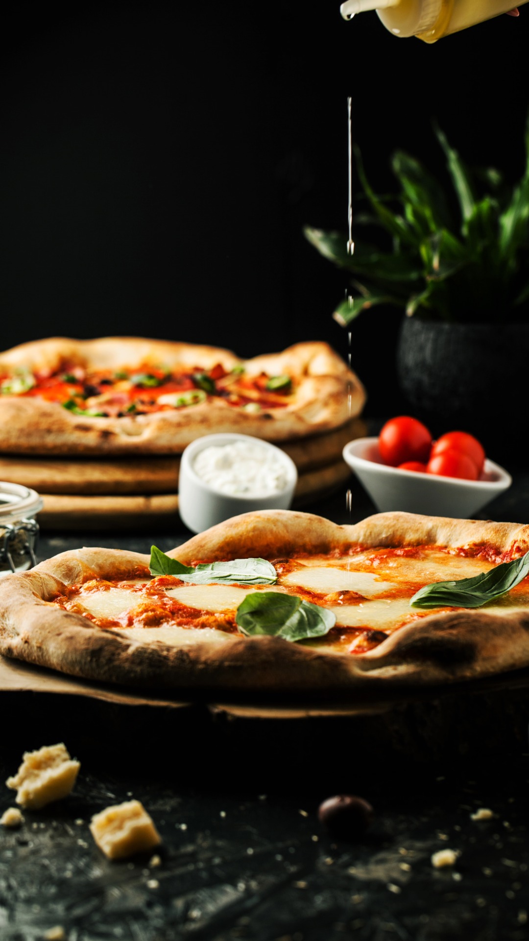 Buffalo mozzarella, tomato, fresh basil, fresh tomato, garlic oil and oregano, finished with fresh basil and extra virgin olive oil